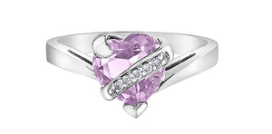 • Anillo de diamantes y amatista rosa en oro blanco de 10 quilates