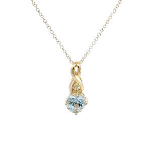 Colgante de oro amarillo de 10 quilates con aguamarina de talla redonda de 5,0 mm y diamante de 0,01 quilates - 18"