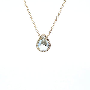 Colgante de oro amarillo de 14 quilates con aguamarina y diamantes de 0,06 quilates - 18"