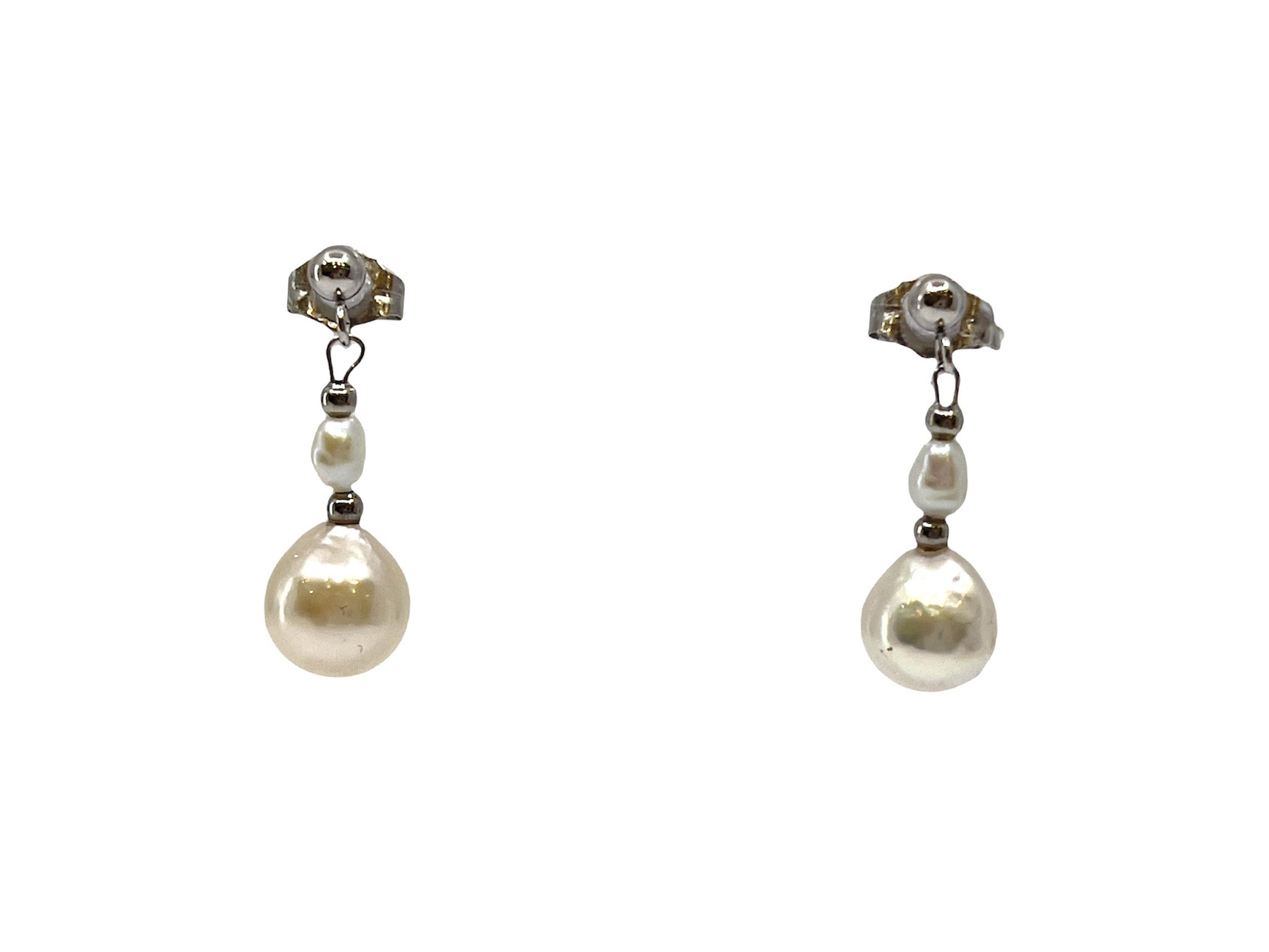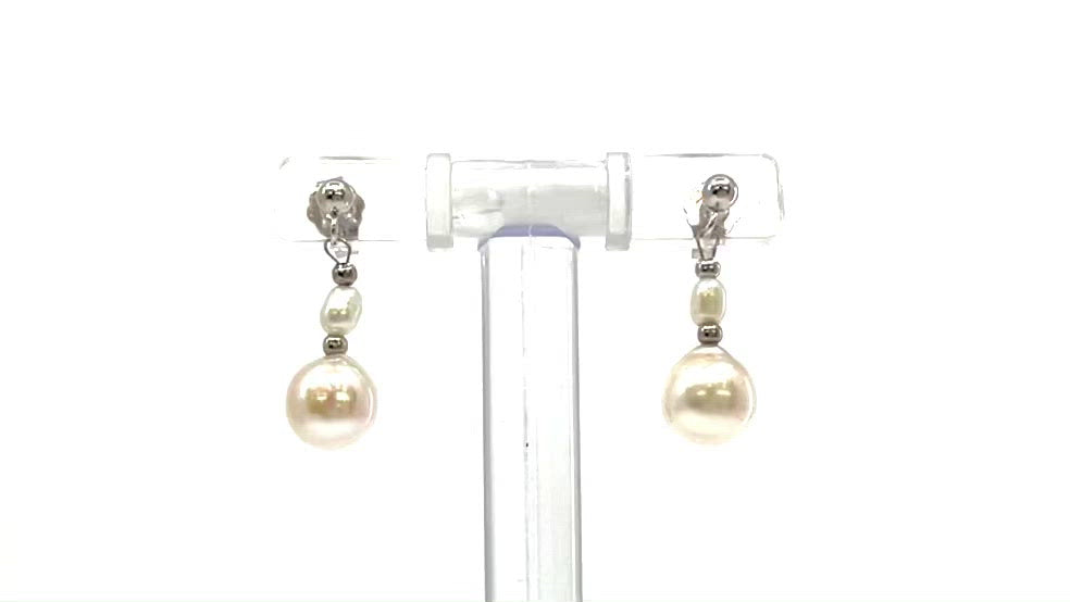 Aretes colgantes de perlas cultivadas y de agua dulce de oro blanco de 14 quilates