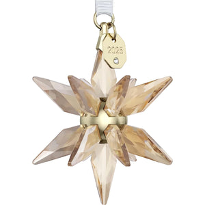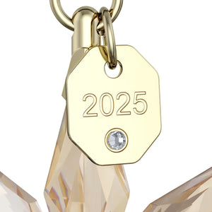Create a festive story full of stars with this Swarovski Annual Edition 3D Ornament. The glittering motif delivers a striking example of savoir-faire with a star-shaped design that features 393 light-catching facets and a champagne gold-tone metal center for added radiance. The gold-tone star is suspended from a white grosgrain ribbon with a 2025 engraving on the tag. Perfect for hanging in a window, or on your tree, and casting a magical light over your holiday décor. Decoration object. Not a toy. Not suitable for children under 15.