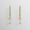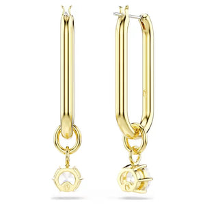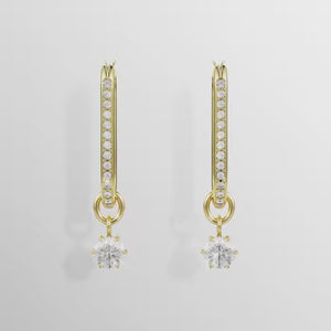 Brighten every day with the gleaming intensity of these gold-tone plated earrings. Each elongated hoop is adorned in shimmering pavé, with a prong-set Swarovski Zirconia that delicately hangs beneath. A wondrous alternative to the classic hoop style that is inspired by the stellar elegance of the Constella family.