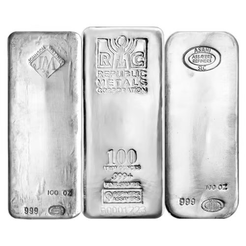 Order a 100 oz Pure Silver Bar today and you will receive our pick of assorted 100 troy ounce 999+ pure bars coming from reputable mints such as Sunshine Mint, Canadian Silver Refiners, Wall Street Mint and more.