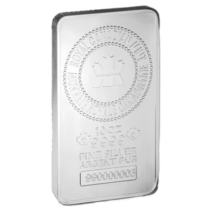 This 10 oz silver bar is manufactured by the Royal Canadian Mint. Each bar comprises of 10 oz of .9999 purity fine silver. Each bar is individually numbered and stamped with weight and purity markers. The bar’s obverse features the Royal Canadian Mint logo, stamped at the top, together with the weight, purity and numerical markers stamped at the bottom.