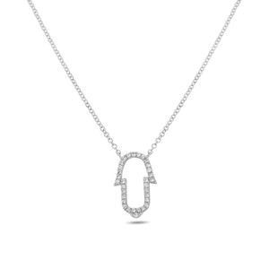 This necklaces showcases a unique, curved design that will add personality to any outfit. Round cut white diamonds, totaling to 0.15 carats, are set in a pave to deliver and elegant shine from the base of the neckline.