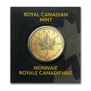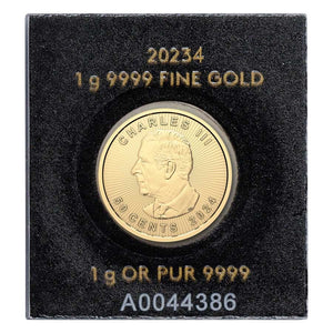 An evergreen item with a timeless design, the 1 gram Gold Coin is a staple for investors and collectors alike. With 9999 purity and a stunning image of the widely recognized Canadian maple leaf, these coins elevate a collection and serve as the perfect investment. A unique serial number for authenticity is included in each, guaranteed by one of the most trusted, established and reputable mints in the international sphere, the Royal Canadian Mint.